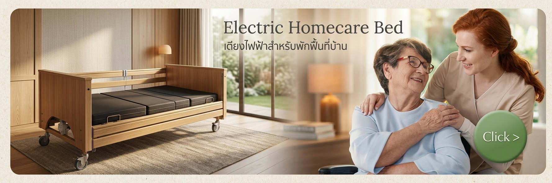 - มีสินค้าให้เลือกครบครัน ครอบคลุมทุกความต้องการในการดูแลผู้ป่วยที่บ้าน ตั้งแต่เตียงไฟฟ้า เบาะที่นอน ไปจนถึงโต๊ะคร่อมเตียง